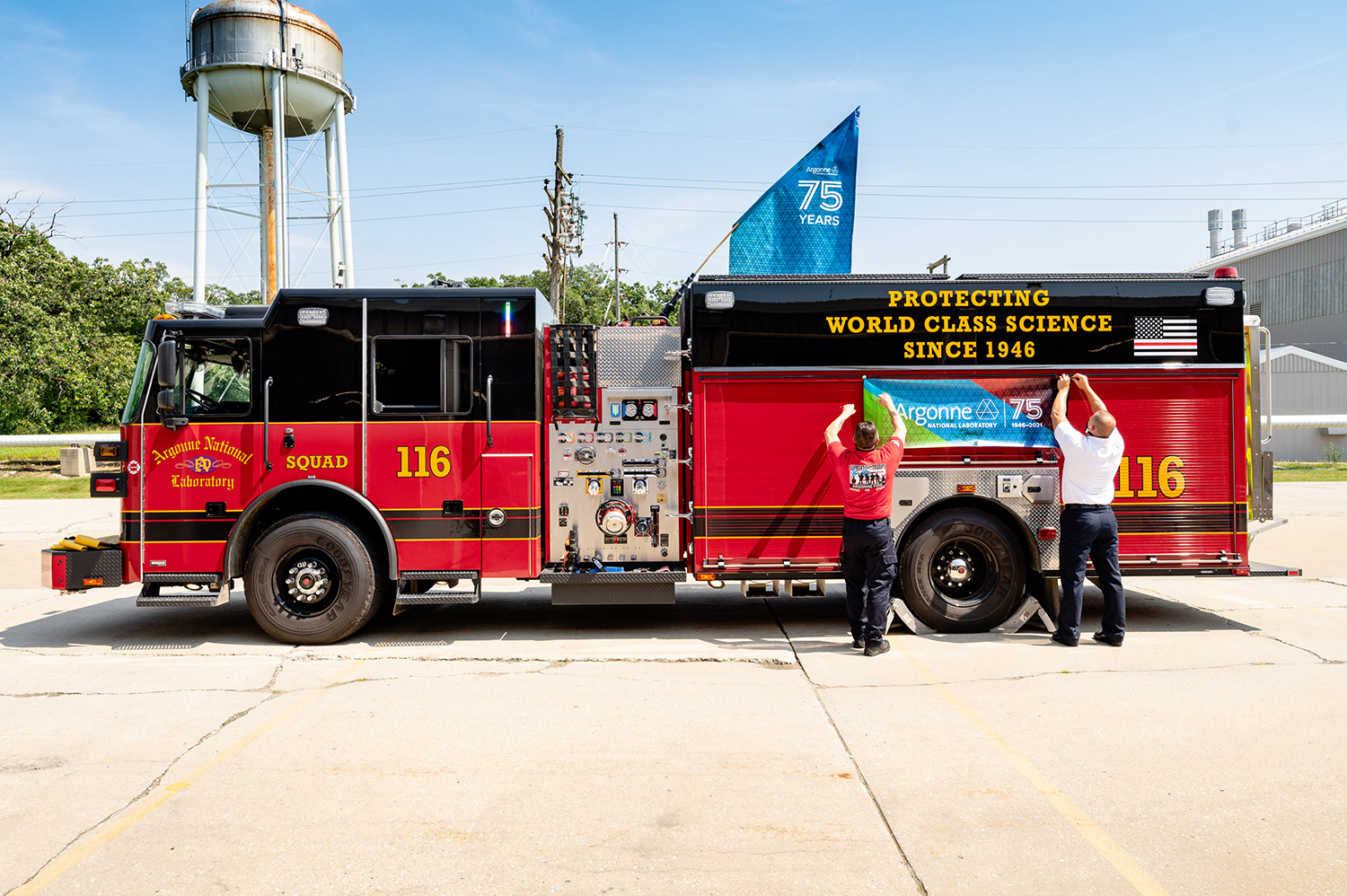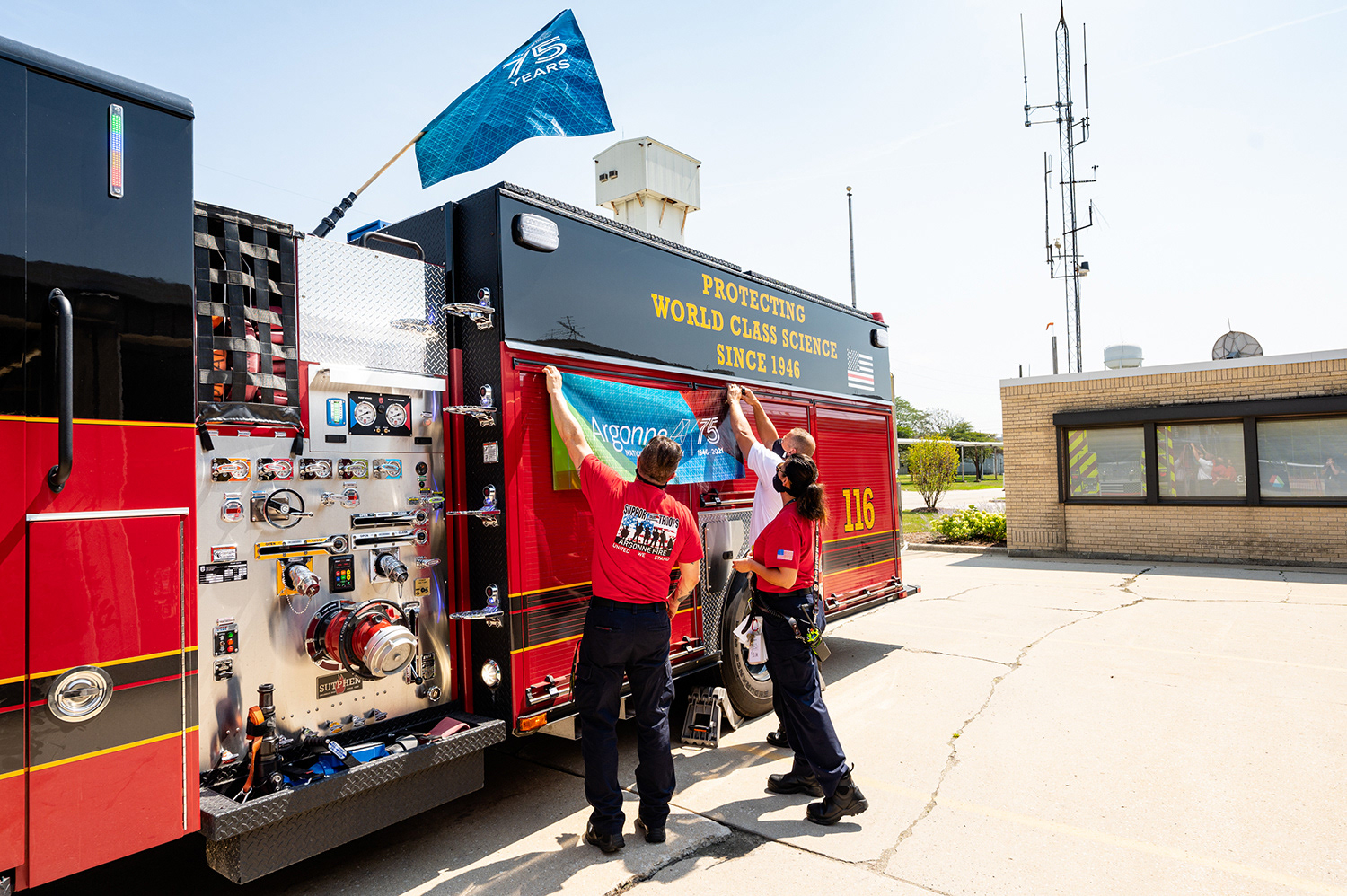 The Argonne fire department participated in a local parade, and needed to be dressed accordingly! I had the fun task of designing a couple banners meant for the truck: one for the side and a flag for the top.