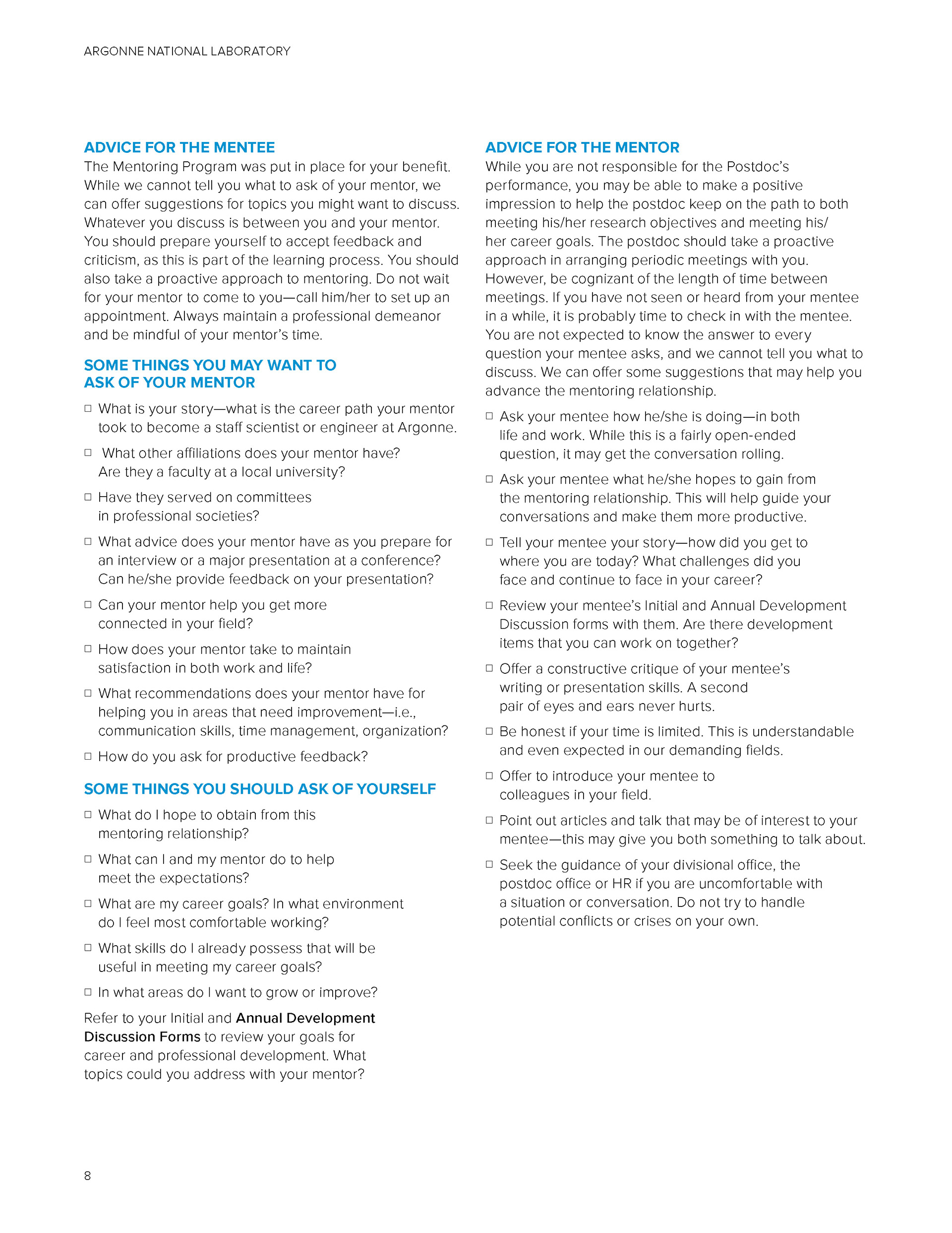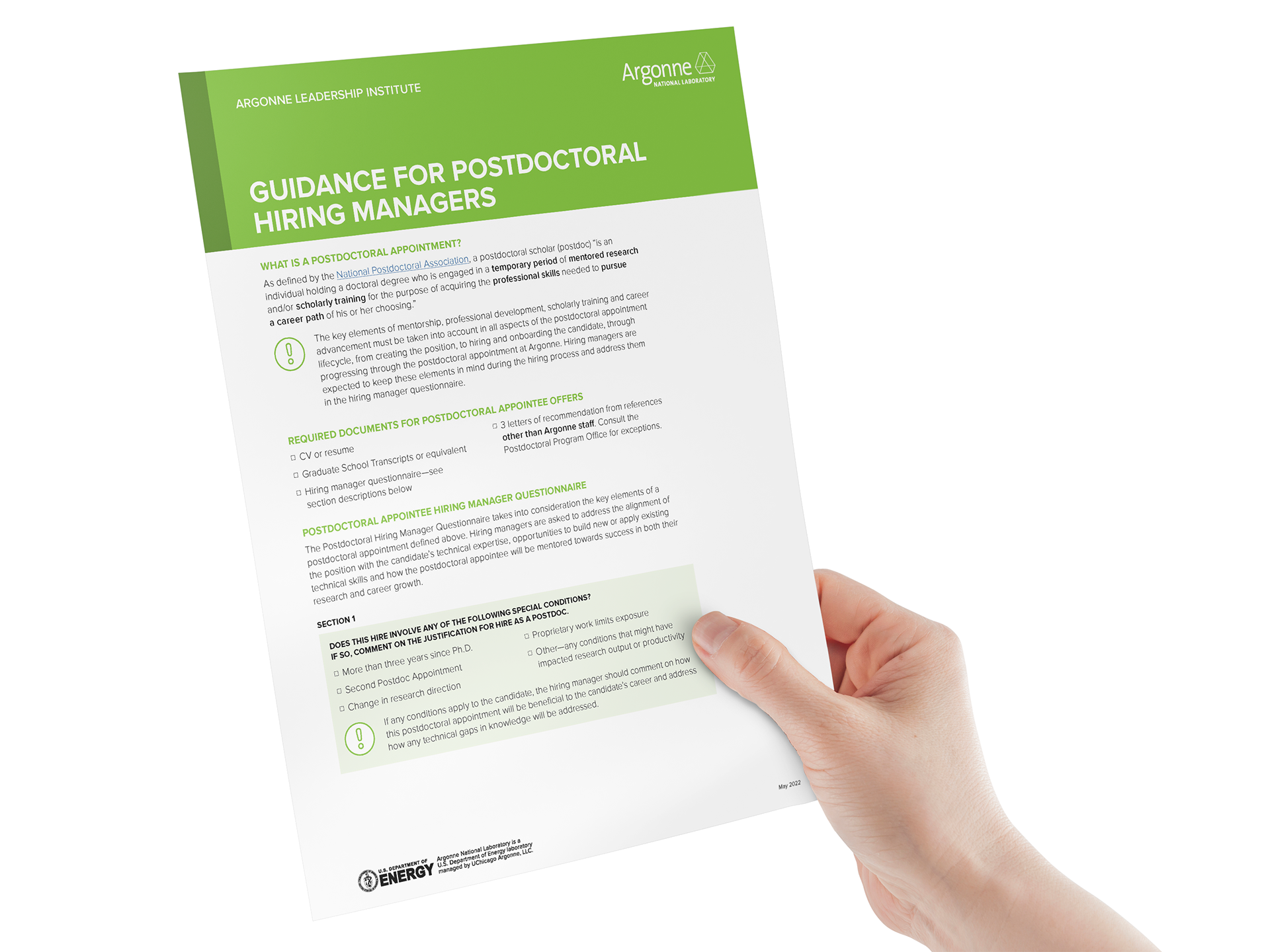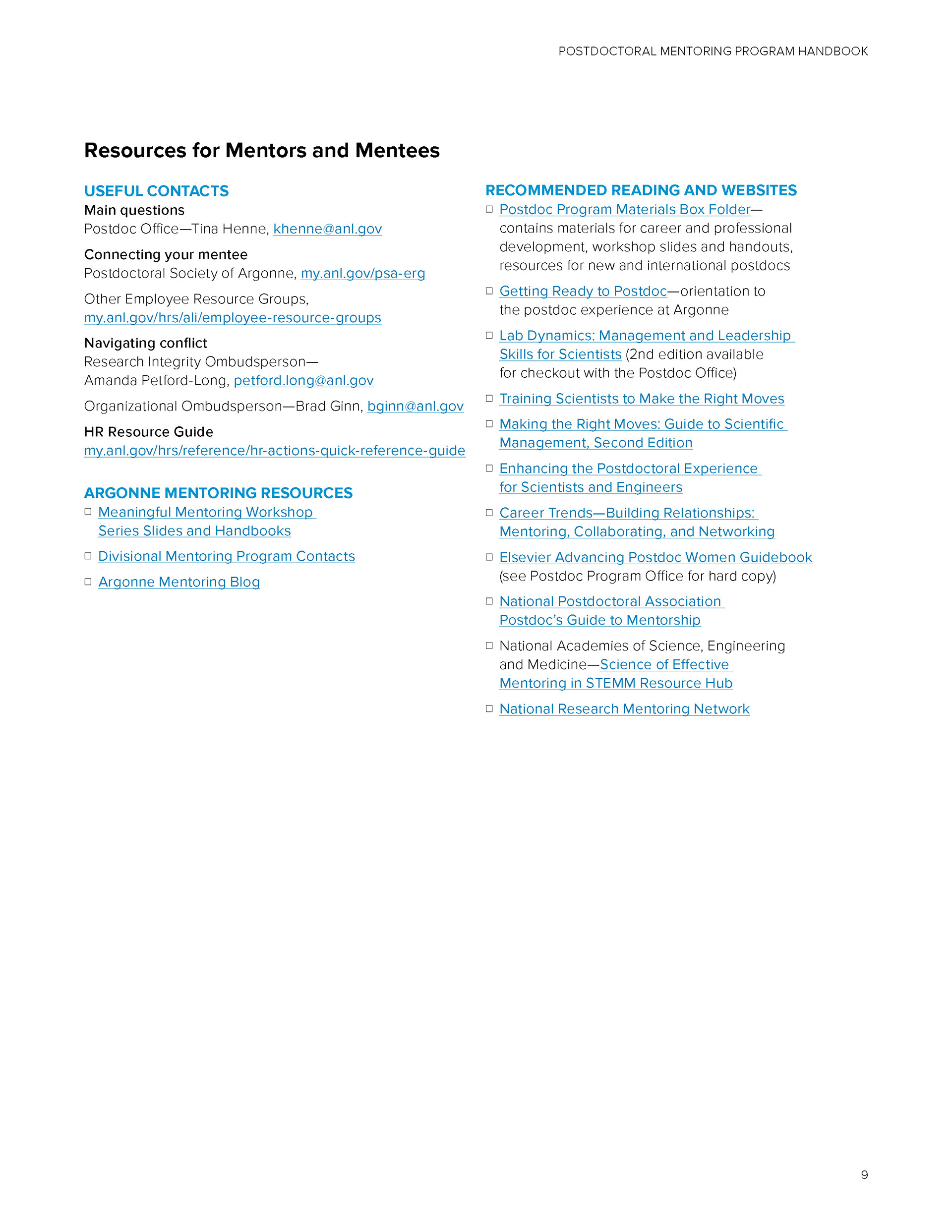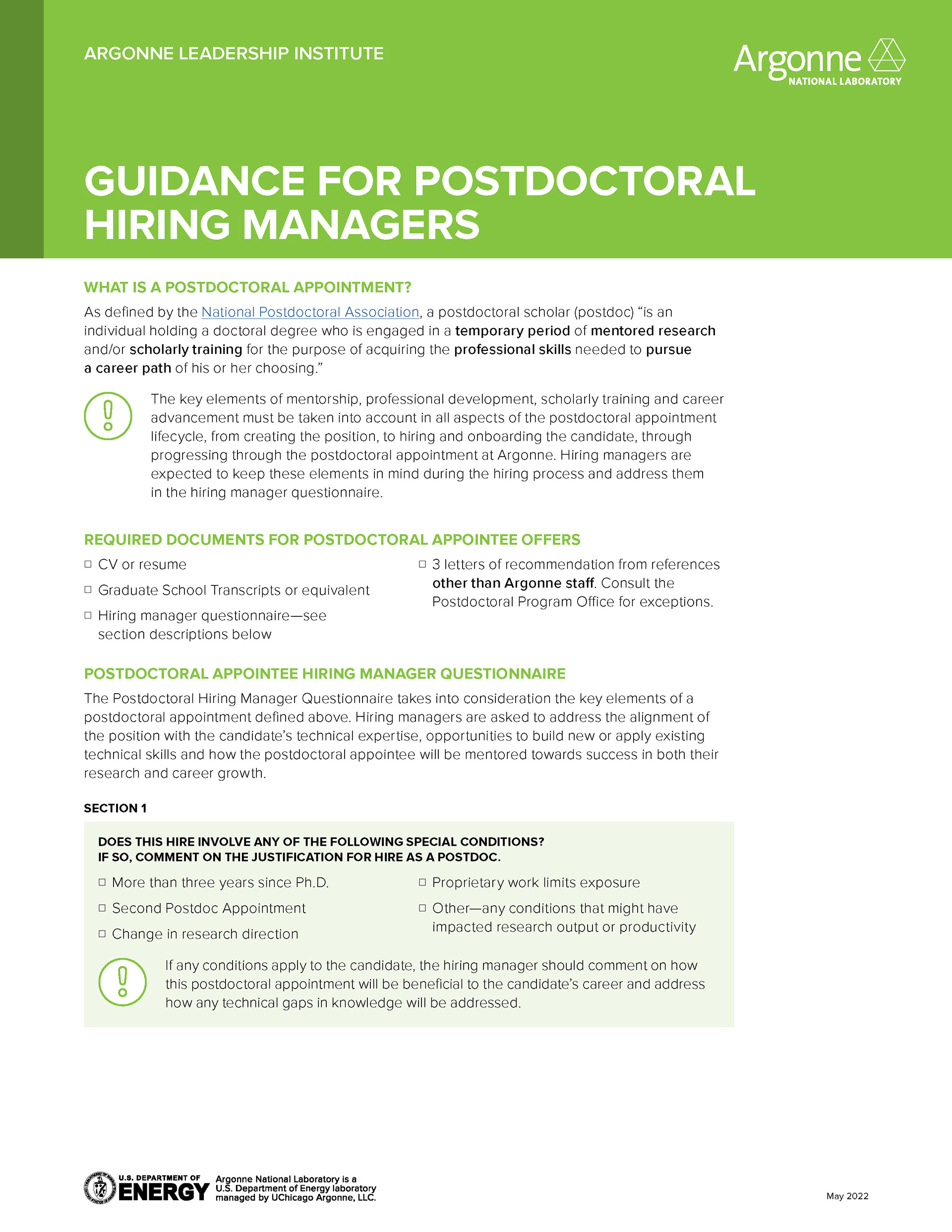 Reference guide created for an audience of postdoctoral researchers, along with a follow up one pager.