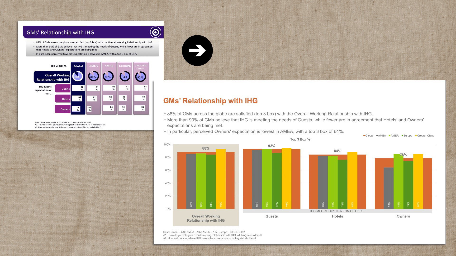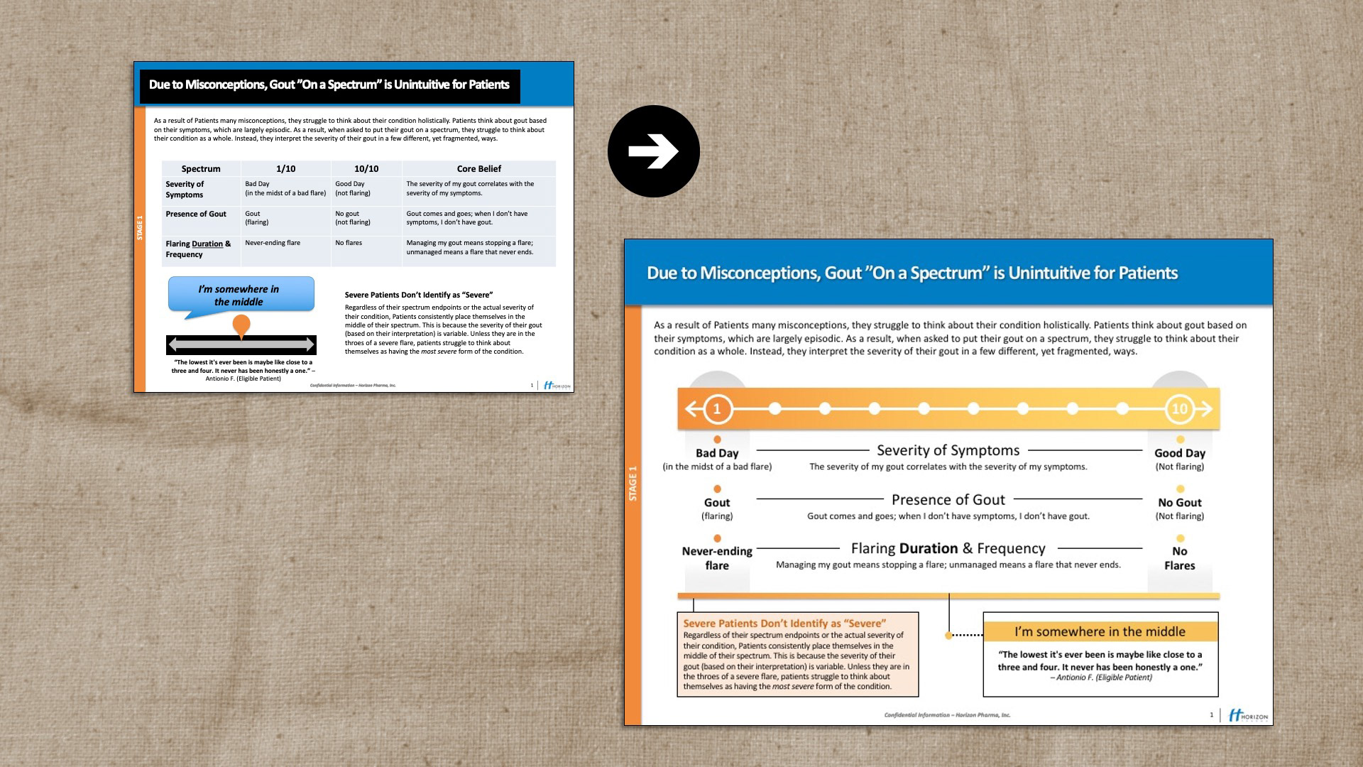 Various slides created in PowerPoint. I've created hundreds of slides in my career and am a PowerPoint super user. These are a handful, but I can provide many more upon request. A few images show before and afters, and then the rest are just afters.