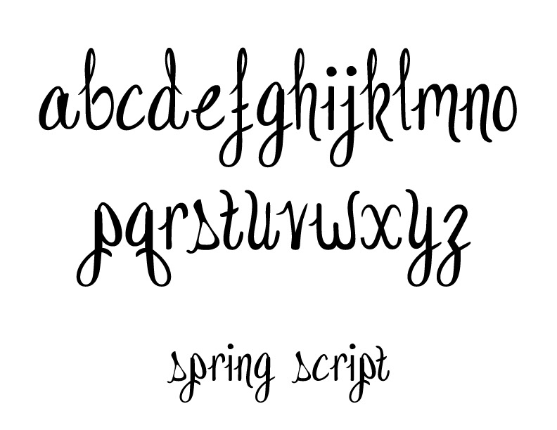 The typeface Spring Script was created for personal use. The letters were drawn with a brush pen, scanned into Illustrator, and then imported into Fontographer. Spring Script is only lower case letters, but the uppercase versions are in the works.